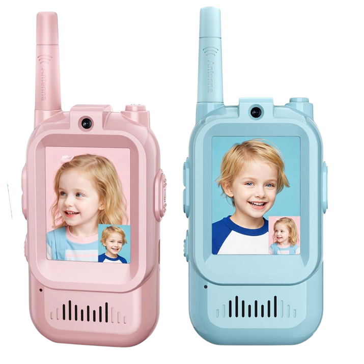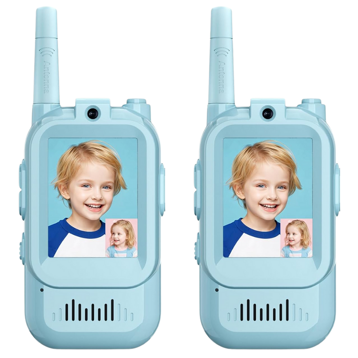 Disse walkie talkies har en räckvidd opp til 100 meter innendørs og 400 meter utendørs. Det gjør at barn kan holde kontakt under deres lekeventyr, uansett hvor de befinner seg.